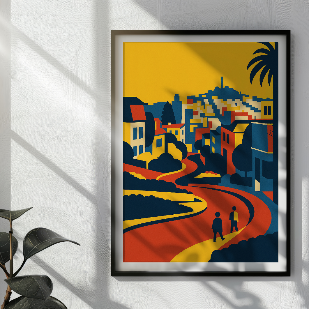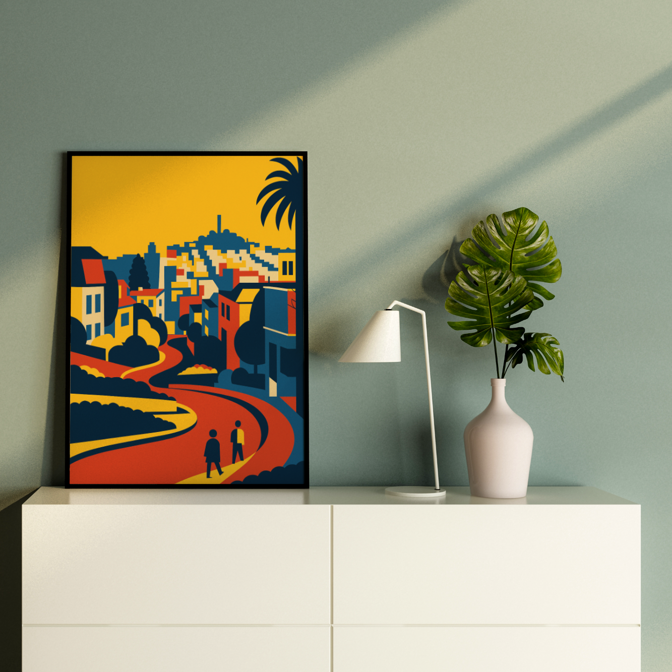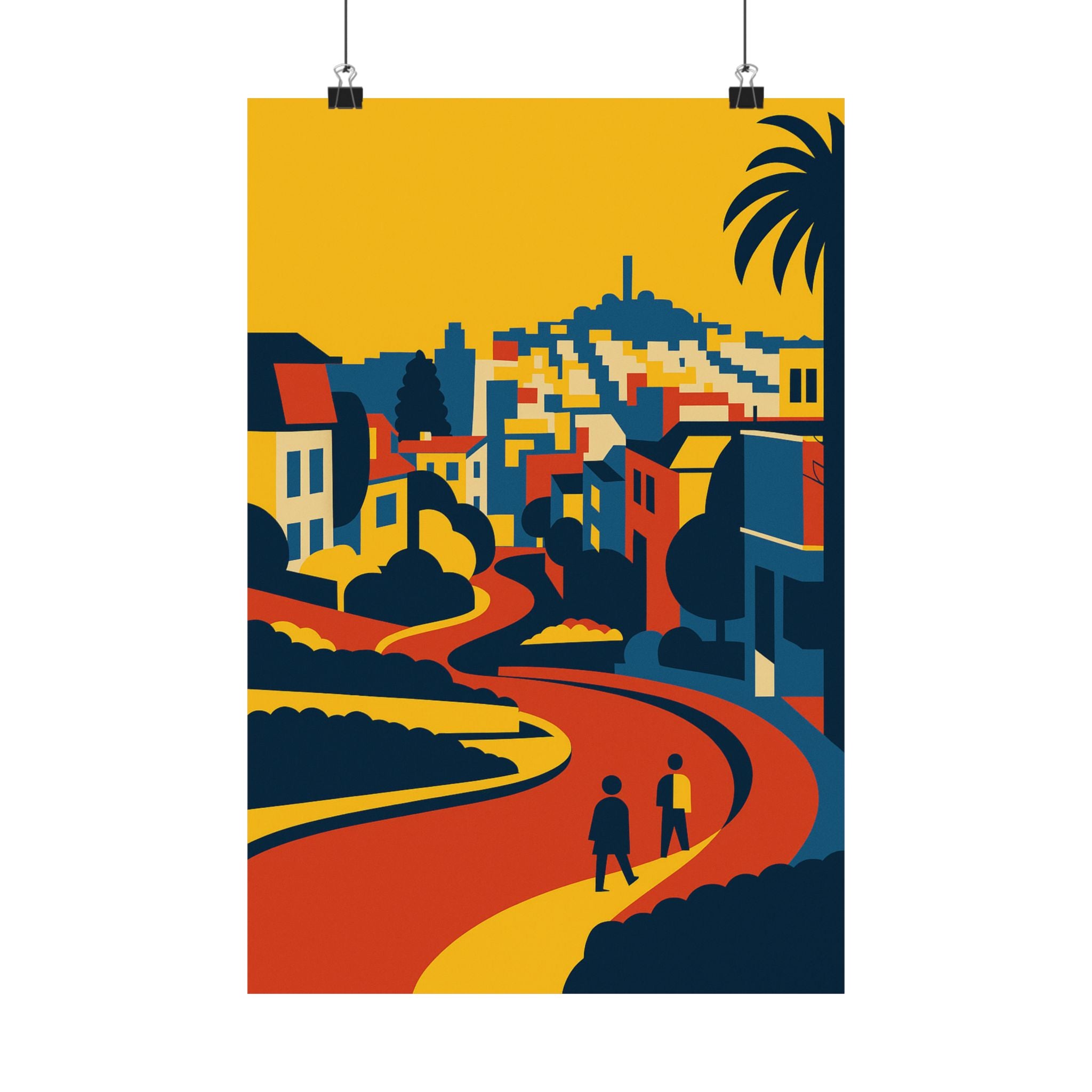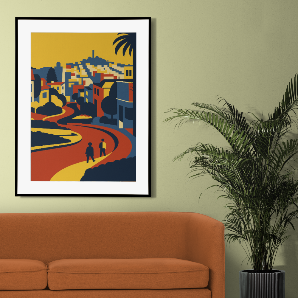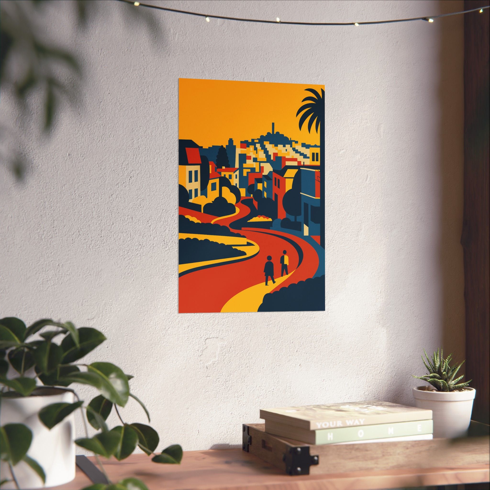 A vibrant pop art wall poster featuring a real picture from Lombardi Street in San Francisco. Perfect for adding a colorful and artistic touch to any room, this poster is made with museum-grade archival paper for long-lasting quality. Ideal for adults looking to decorate their living spaces with a unique and eye-catching design. Relevant for home decor, art lovers, and people who appreciate San Francisco landmarks.